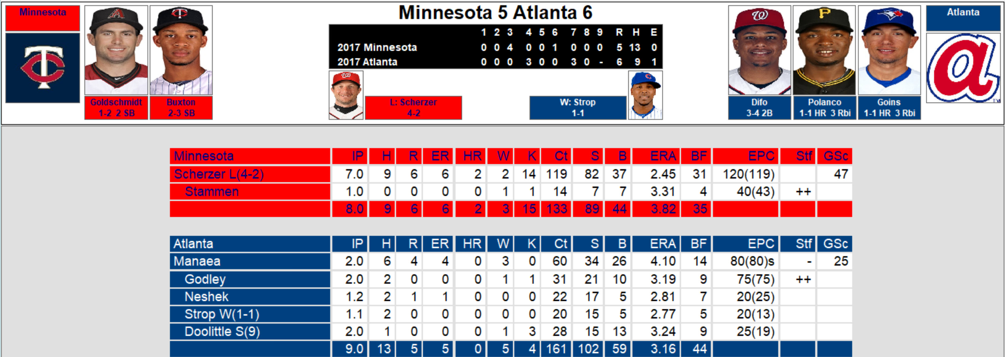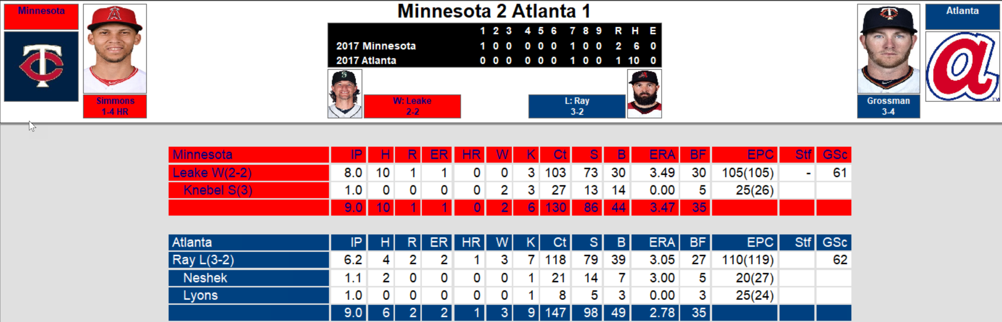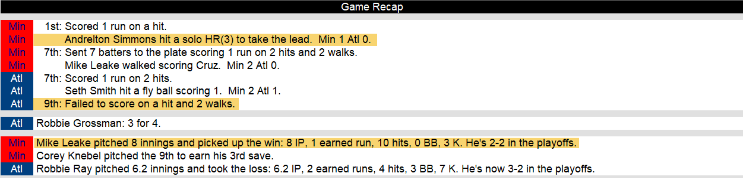 Game 4 at Minnesota Atlanta pushes Twins to brink of elimination taking 3-1 series lead![]() ![]() |